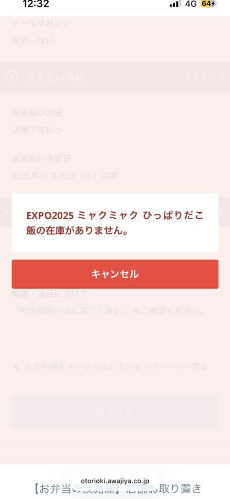 2025年10月1日から10月26日まで「店舗取り置き」or「全国配送」の事前予約を受け付けていた淡路屋の「EXPO2025 ミャクミャク ひっぱりだこ飯」が再販されました。