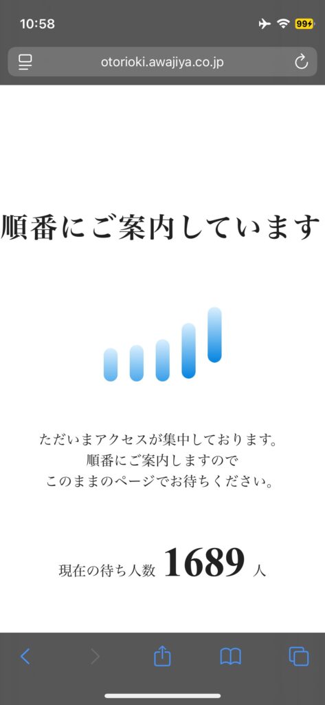 ただ、早ければ良いというわけでもなく、9:50頃にアクセスした際は待ち無しでページに案内されました。