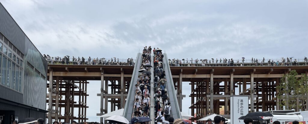 ↑「大屋根リング」今日も大混雑のエスカレーター。直近の3か月くらいは大屋根リング上を歩いていない。ただ、大屋根リング下には臨場のたびに助けられている。