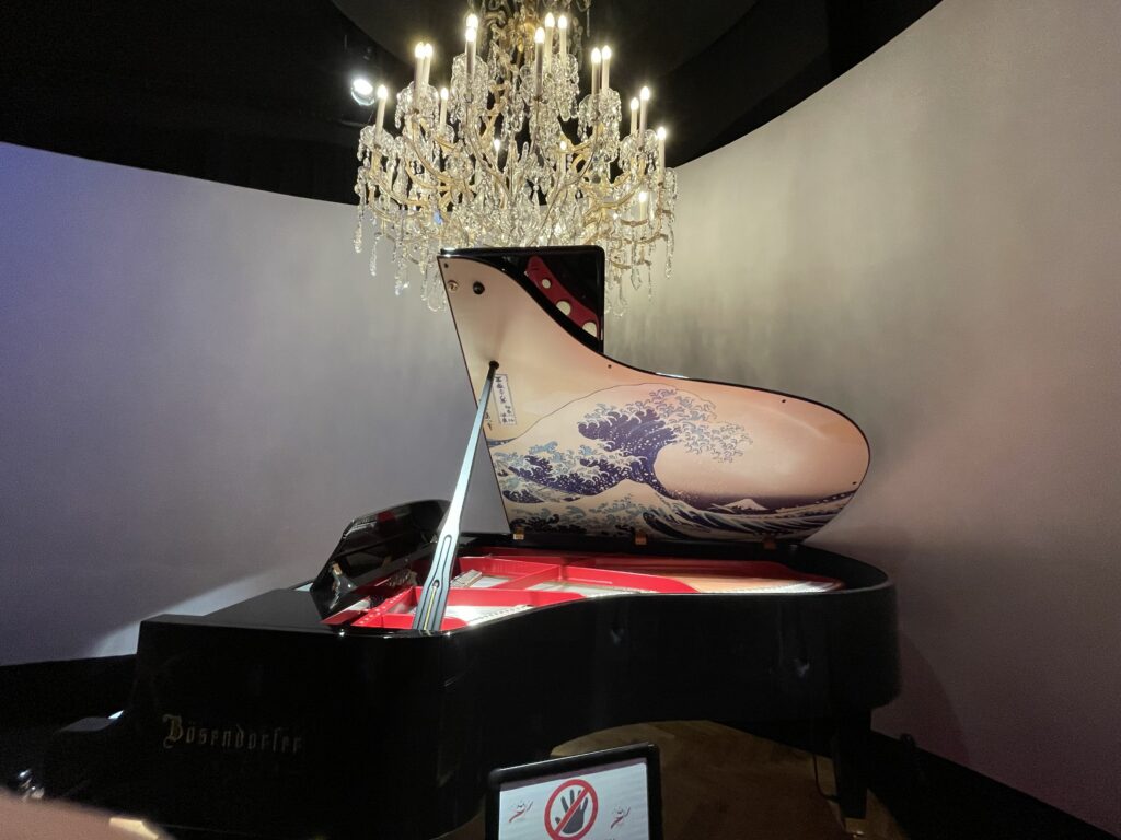 ↑「オーストリア館」現存する世界最古のピアノメーカー・ベーゼンドルファーにて制作された約5,000万円のピアノ。