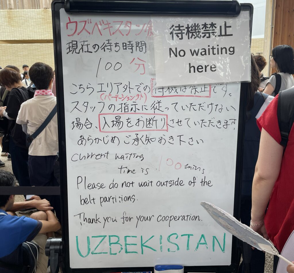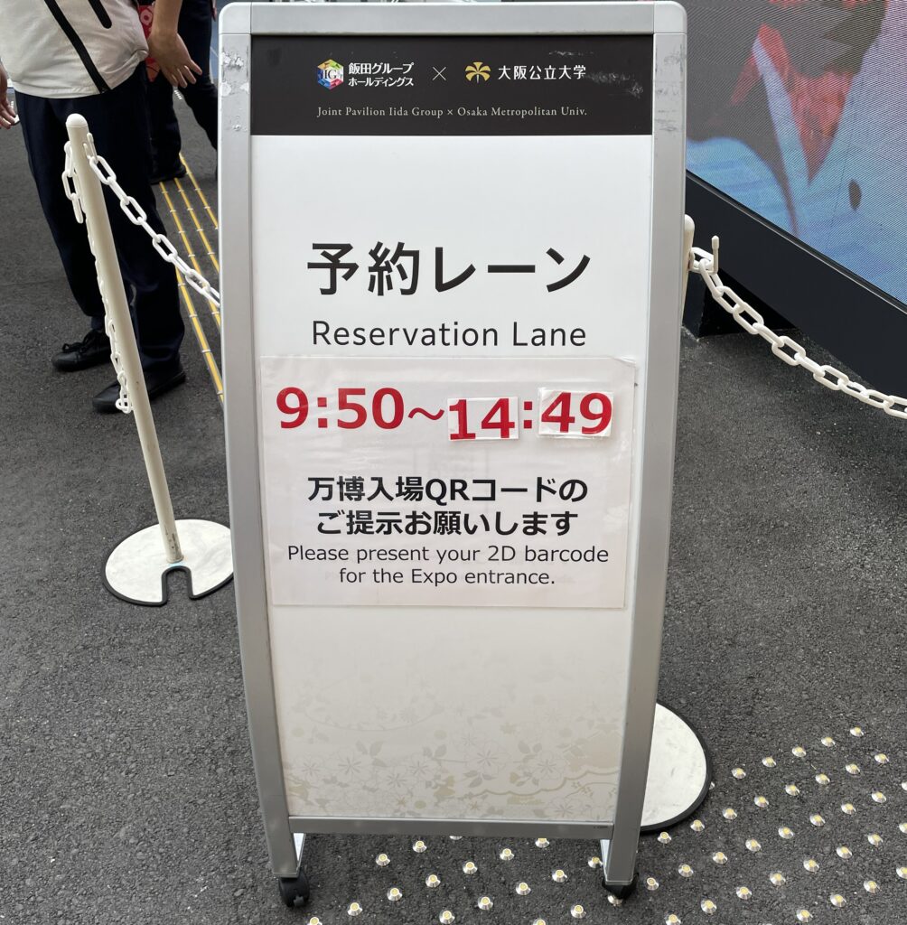 ↑とても良心的な例。だいたいのパビリオンは遅れても早くても入れてくれない中、幅広い受け入れ態勢。
