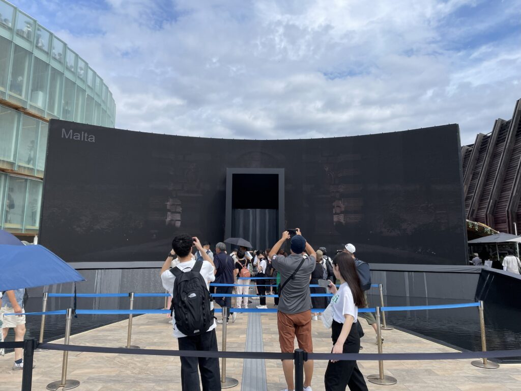 - 同じく体験できていないルーマニア館の長い待ち行列に並んだ