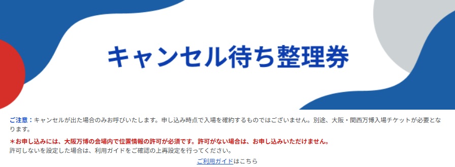 CATEGORY チケット・入場情報 【大阪・関西万博の歩き方】会期末期に入場予定の初心者必見!! 2025.10.08 アクセス シバー 大阪・関西万博.jp 【当日券への引き換え情報】引き換え終了時間は!?【死に券】 2025.10.07 アクセス シバー 大阪・関西万博.jp 【死に券を諦めない】9時入場を狙う!【当日券への引き換えは!?】 2025.10.04 アクセス シバー 大阪・関西万博.jp 【9時予約の秘策】死に券とは!?当日券への引き換え方法!当日券への引き換え以外の方法はない!? 2025.09.30 アクセス シバー 大阪・関西万博.jp 帰宅困難多発の万博からサッと帰る方法!少し早めの退場による圧倒的なメリットとは!? 2025.09.30 アクセス シバー 大阪・関西万博.jp